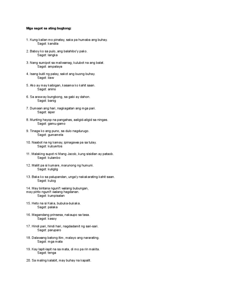 Mga Sagot Sa Ating Bugtong Pdf