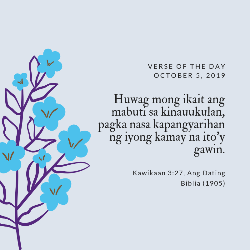 Omega Digibible Di Twitter Verse Of The Day October 5 2019 Huwag Mong Ikait Ang Mabuti Sa Kinauukulan Pagka Nasa Kapangyarihan Ng Iyong Kamay Na Ito Y Gawin Kawikaan 3 27 Ang Dating Biblia